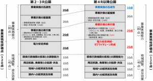 • 産業基盤の確立などに資するサプライチェーン形成を評価する観点から、電力安定供給の項目の名称を変更し、評価点を20点から25点に。