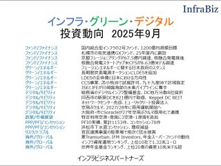 グリーン/エネルギー インフラ・グリーン・デジタル投資動向 2025年9月 「インフラ・グリーン・デジタル投資動向」は、インフラ投資・運用戦略を立案・検証するための月次レポートです。政策/市場展望、グリーン/エネルギー、デジタル/モビリティ、ファンド/ファイナンス、PPP/PFI/コンセッション、海外/グローバル―... 2025.10.07 グリーン/エネルギーPPP/PFI/コンセッションデジタル/スマートシティファンド/ファイナンス経営/戦略政策/市場展望海外調査レポート
